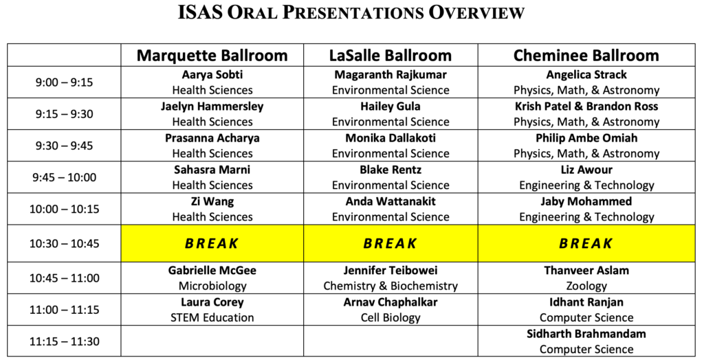 Oral Presentations [Cheminee, LaSalle, and Marquette Ballroom]